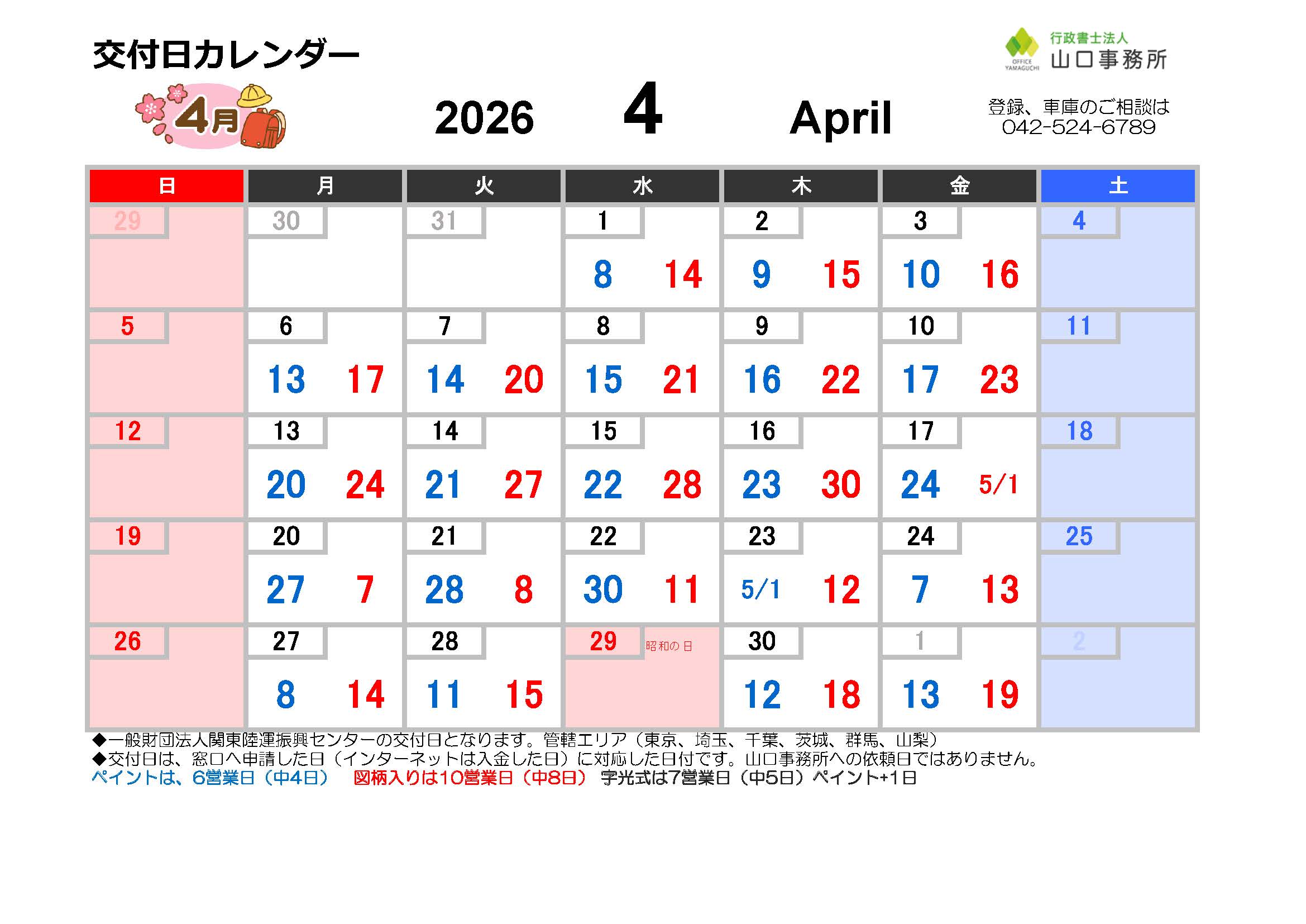 申請から1週間程度で取得可能です。まずは山口事務所にご相談ください。